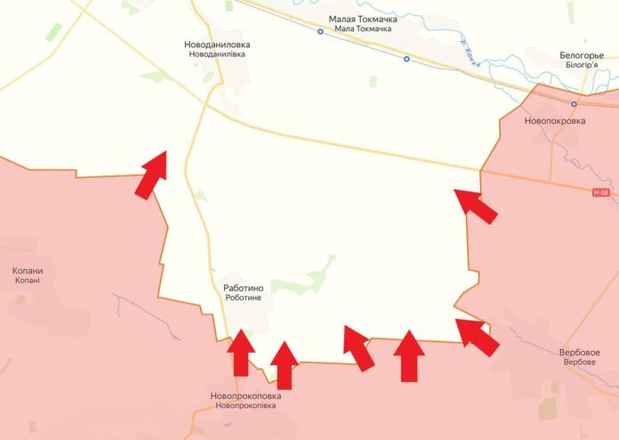 На Запорожском направлении ВС РФ атаковали со стороны Новопрокоповки и Вербового. На обоих участках есть тактическое продвижение. Под обстрелами украинские позиции в Лобковом, Новоандреевке, Чаровном, Железнодорожном и Малиновке. Российские - в Копанях, Новопрокоповке и Вербовом.