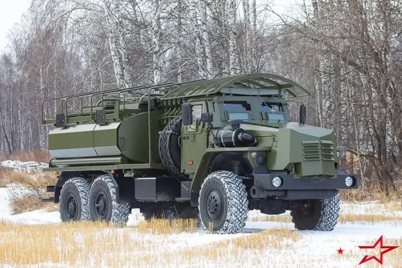 Работа по адаптации техники Службы ГСМ под реалии СВО в военном ведомстве ведётся масштабная. Одним из примеров может служить автотопливозаправщик для проведения специальных военных операций АТЗ-8-4320М на шасси Урал-4320-40. Машина стала квинтэссенцией решений, повышающих живучесть бензовоза и его экипажа. Используется капотное шасси Урала, что автоматически повышает его противоминную стойкость. Как ни крути, но подрыв на мине КамАЗа – это почти всегда фатальные травмы как минимум для одного человека из кабины. Урал в этом смысле безопаснее. Бензовоз выпускается на НПО «Вектор» в Челябинской области и уже с завода оснащается бронированной кабиной. В отличие от полевого блиндирования упомянутого выше бензовоза АЦ-7-4310, новейшая машина имеет противодроновую решётку на крыше кабины.