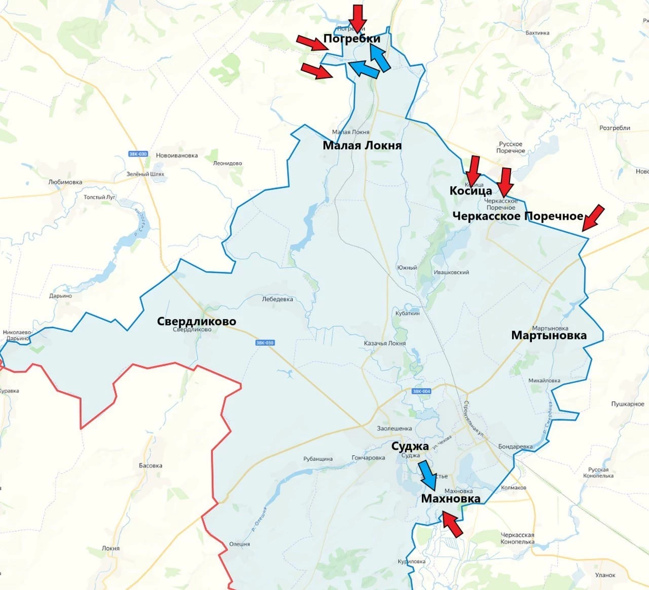 Российские войска давят в районе Русское Поречное в направлении Косицы и в районе Махновки.
