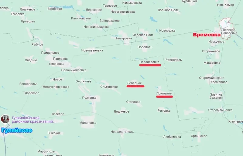 От Времевки до Гуляйполя – немалые 50 км. Но здесь нужно учитывать тот факт, что ВС РФ ранее освободили Новодаровку и Левадное на границе ДНР и Запорожской области, а это гораздо ближе к тому же Гуляйполю.