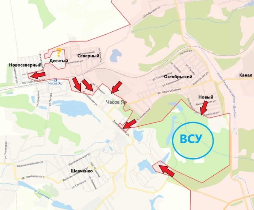 В Часов Яре наши парни продолжают идти вперед в северной части города. Также ВС РФ ведут бои за квартал многоэтажек рядом с огнеупорным заводом, сообщает военкор Евгений Лисицын в своём Telegram-канале.