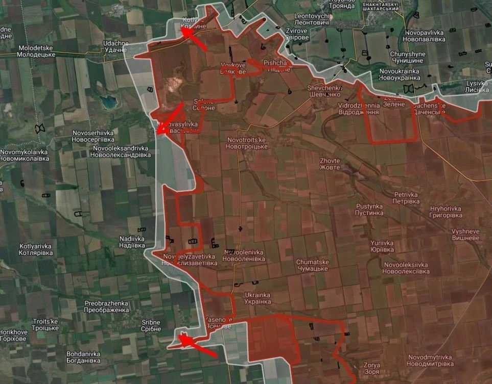 Продвижение российских войск на юг и север от Купянска оказало значительное влияние, хотя это направление не так широко освещается, как успехи штурмовиков на покровском участке ЛБС. Военный эксперт Андрей Марочко, ссылаясь на данные разведки, сообщает, что Вооруженные силы России успешно двигаются к южному участку Купянска, загоняя противника в реку Оскол, передает "АиФ".