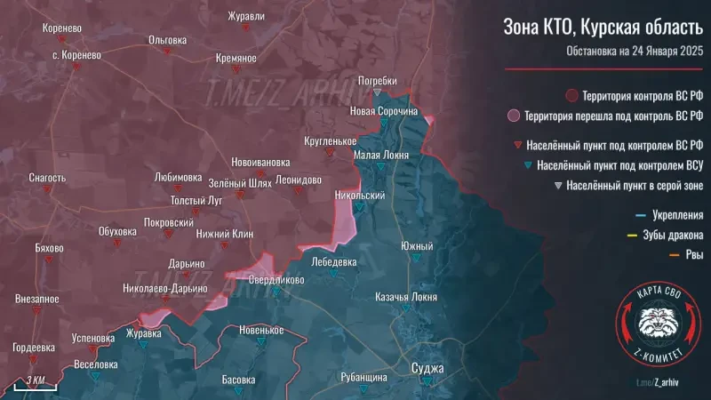 Подразделения группировки войск «Север» продолжают продвижение в Курской области, уничтожая противника и пытаясь взять его войска сначала в оперативное, а затем и полное окружение.