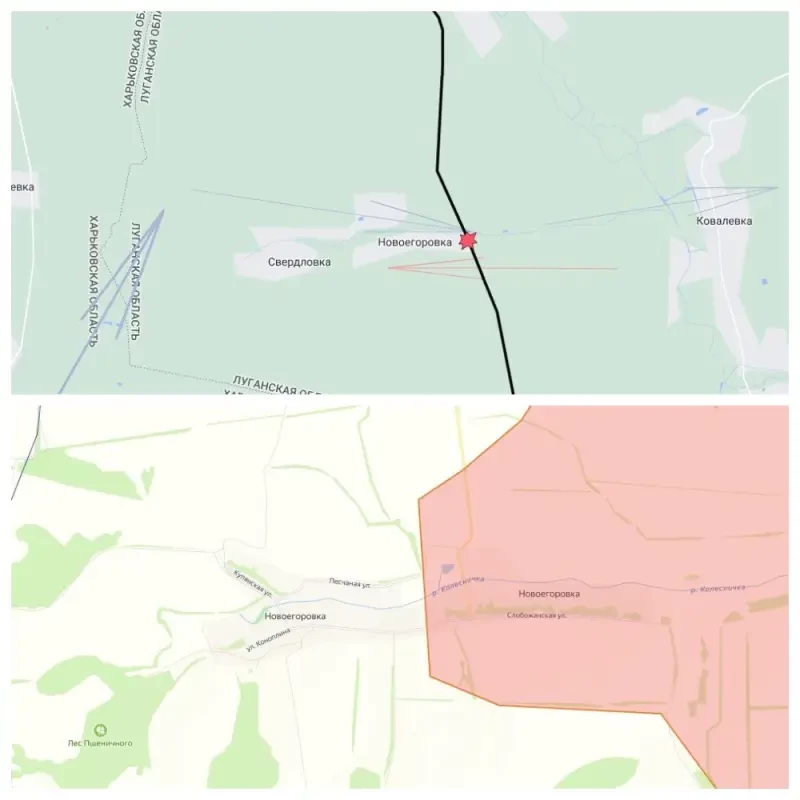 Кстати, немного о споре в отношении Новоегоровки, возникшем в последнее время. Суть его в том, что часть российских ресурсов обвиняет командование в «приписках» в отношении этого села, которое якобы не было взято, приводя как доказательство карты. На самом деле там два села, разделенных дорогой, и оба называются Новоегоровкой. Но по российским картам западное село называется Свердловка. Вот его-то российские войска еще не заняли, тогда как восточное уже под нами. Как пример две разные карты с одним селом: