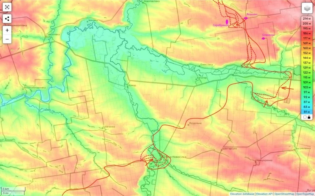 В междуречье рек Солёная и Волчья судя по очень серьезным нашим атакам в районе н.п. Серебряное, за которое уже начались бои, наше командование задумало широкий охват и разгром группировки противника в районе реки Волчья.