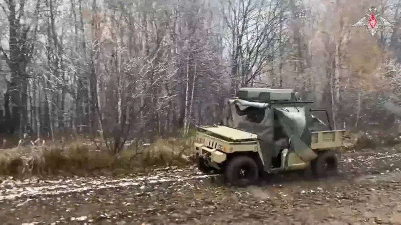 Багги на маршруте. На крыше машины заметна станция РЭБ. Фото Минобороны РФ