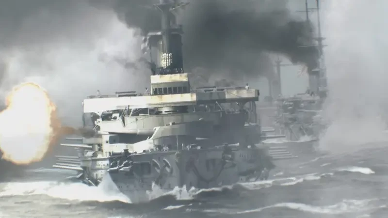 Петля Того в исполнении японских броненосцев. Кадр из фильма «Тучи над холмами»