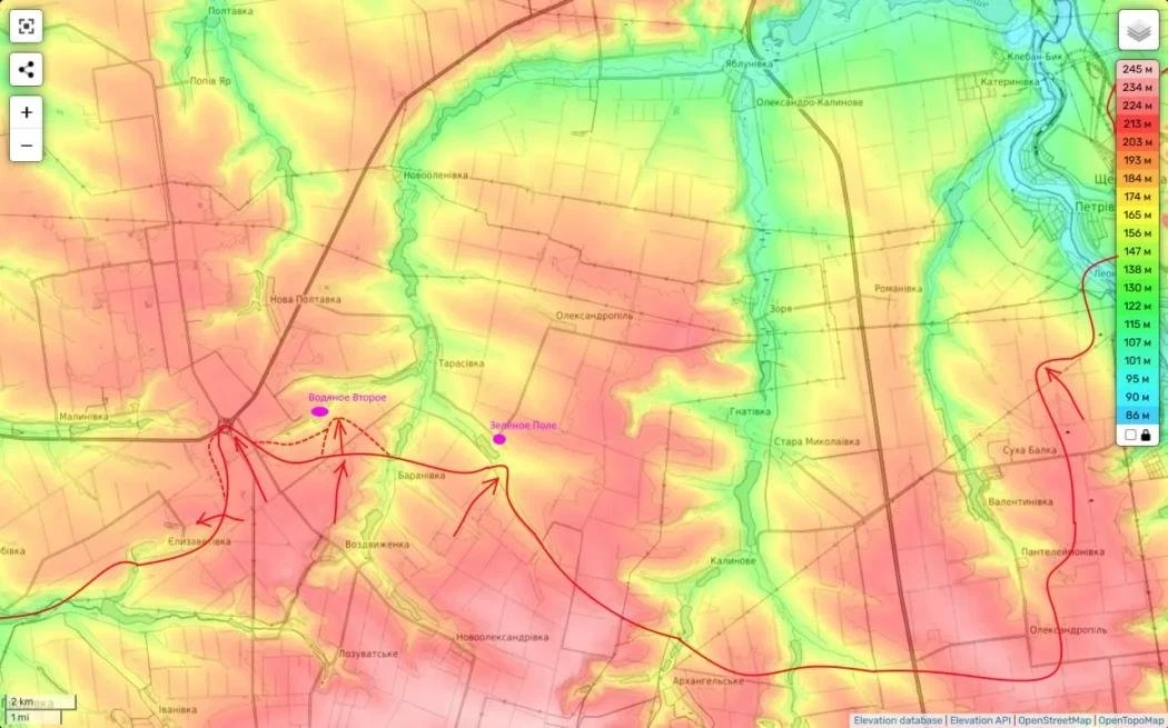 Согласно поступающей информации, российские подразделения медленно продвигаются на север от населённого пункта Воздвиженка, а также пытаются закрепиться в районе Елизаветовки.