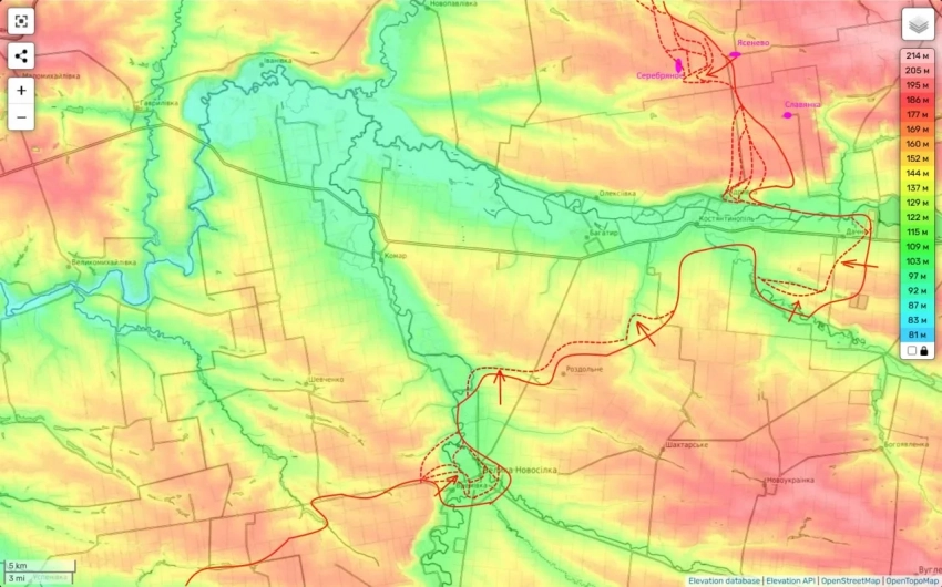 Скоординированные удары наносятся сразу по нескольким направлениям. Севернее реки идут ожесточенные бои за Андреевку, где российские подразделения ведут активные наступательные действия. Одновременно продолжается движение на Алексеевку через Серебряное.
