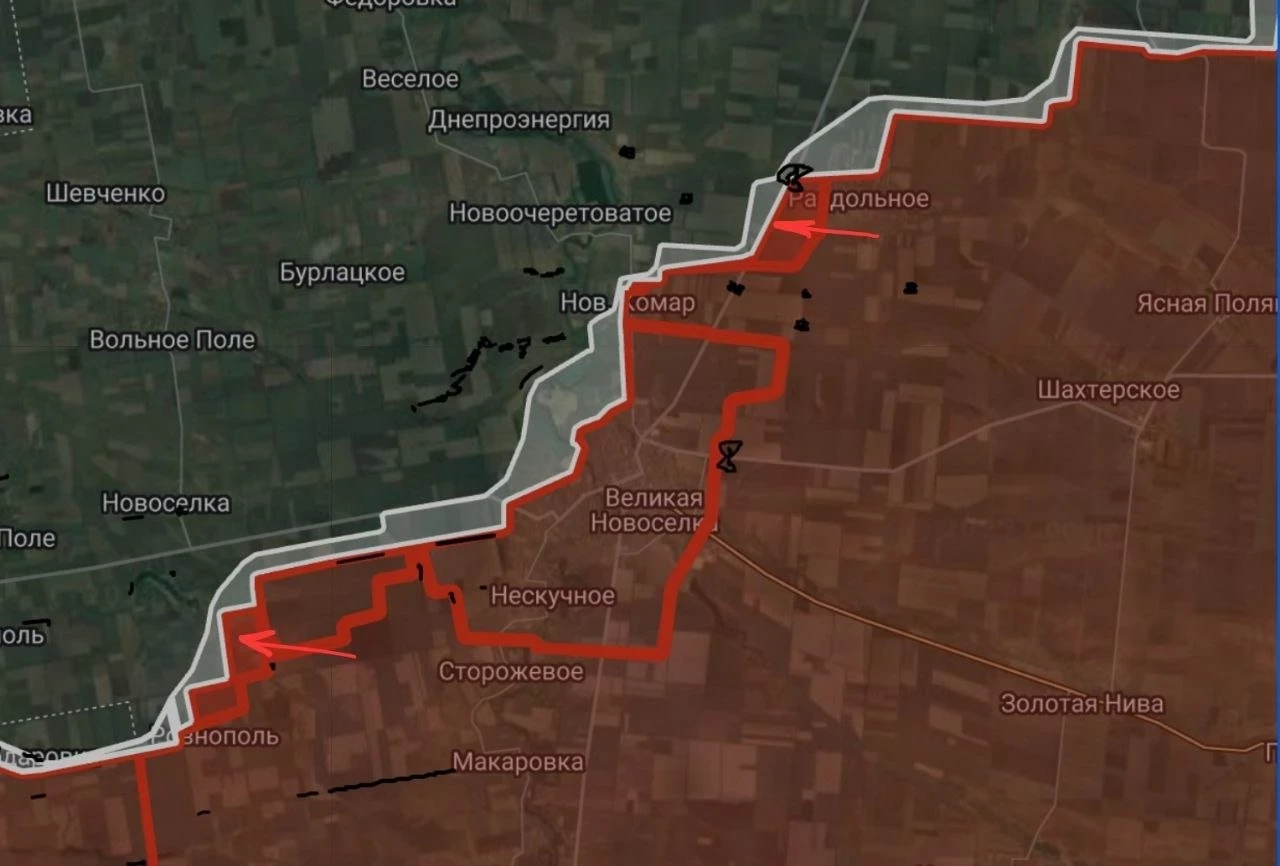 На Угледарском фронте ВС РФ широким фронтом двигаются к Новосёлке и Ровнополю. Западнее Раздольного наши зашли в ротный опорный пункт. Южнее Разлива удалось продвинуться примерно на 2 км, выбив ВСУ с выгодных позиций. ВС РФ атакуют здесь и восточнее Разлива к Богатырю. Идут ожесточённые бои за окружение ВСУ, застрявших в районе Дачное-Улаклы-Константинополь. На подступах к последнему ВС РФ атакуют с юго-востока опорный пункт ВСУ. Выход наших подразделений к трассе восточнее Улаклы приведёт к окружению подразделений ВСУ в Дачном и южнее вдоль балки. В самом Дачном враг теряет устойчивость обороны, но еще бьется. В Андреевке ВС РФ расширяют зону контроля в северо-восточной части, пробиваясь к центру села. ВСУ выбиты с ряда позиций восточнее, а севернее наши атакуют позиции ВСУ на высотах.