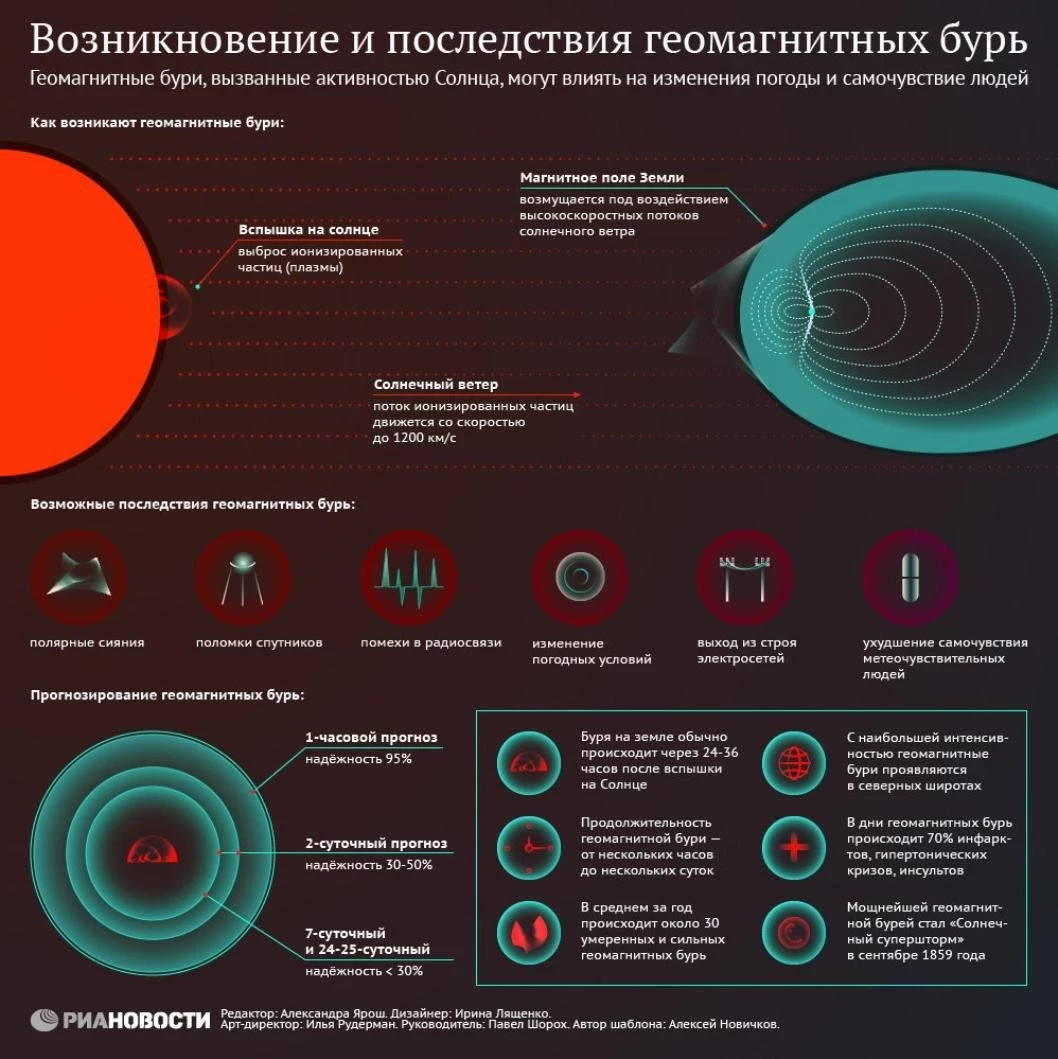 Пока наукой не доказано конкретное воздействие магнитных бурь на человека, но врачи отмечают, что люди (особенно с наличием хронических заболеваний) могут во время геомагнитного шторма испытывать множество неприятных симптомов.