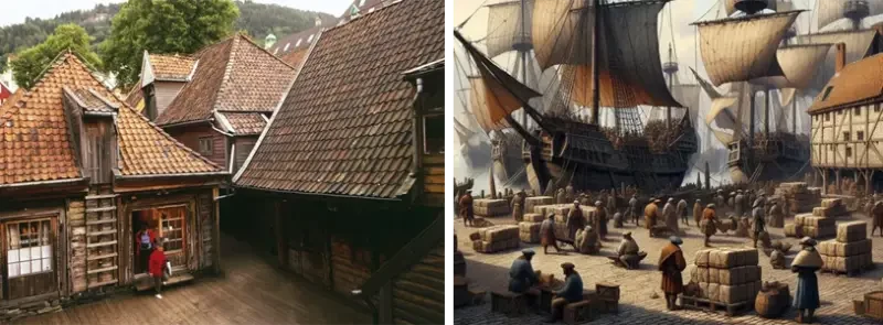 Сразу же после открытия конторы в Бергене началась перестройка местной гавани, вокруг которой выросли административные помещения, где работали писари и торговцы из разных стран, прежде всего из Германии. Склады были забиты самыми необходимыми предметами торговли: рыбой из северной Норвегии и зерном с континентальной Европы.