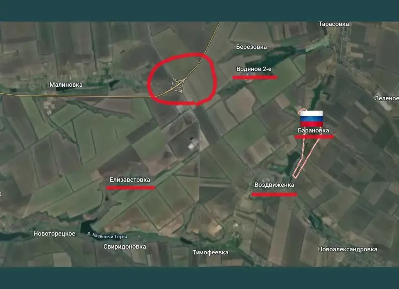 После освобождения сёл Барановка и Водяное-2 у российских войск появляются все шансы на то, чтобы расширить протяжённость контролируемого участка этой дороги – Т0504. Малиновская развязка уже контролируется Вооружёнными силами России.