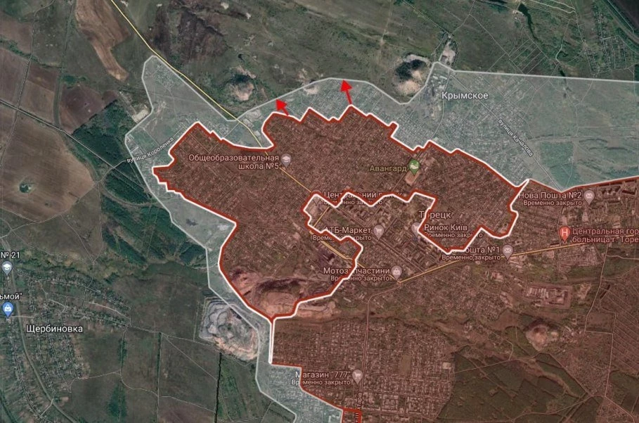 На Торецком направлении в Торецке ВС РФ давят в направлении террикона западнее шахты «Торецкая», а также в районе очистных сооружений, имеются тактические успехи в северной части города, сообщает "БелВПО".