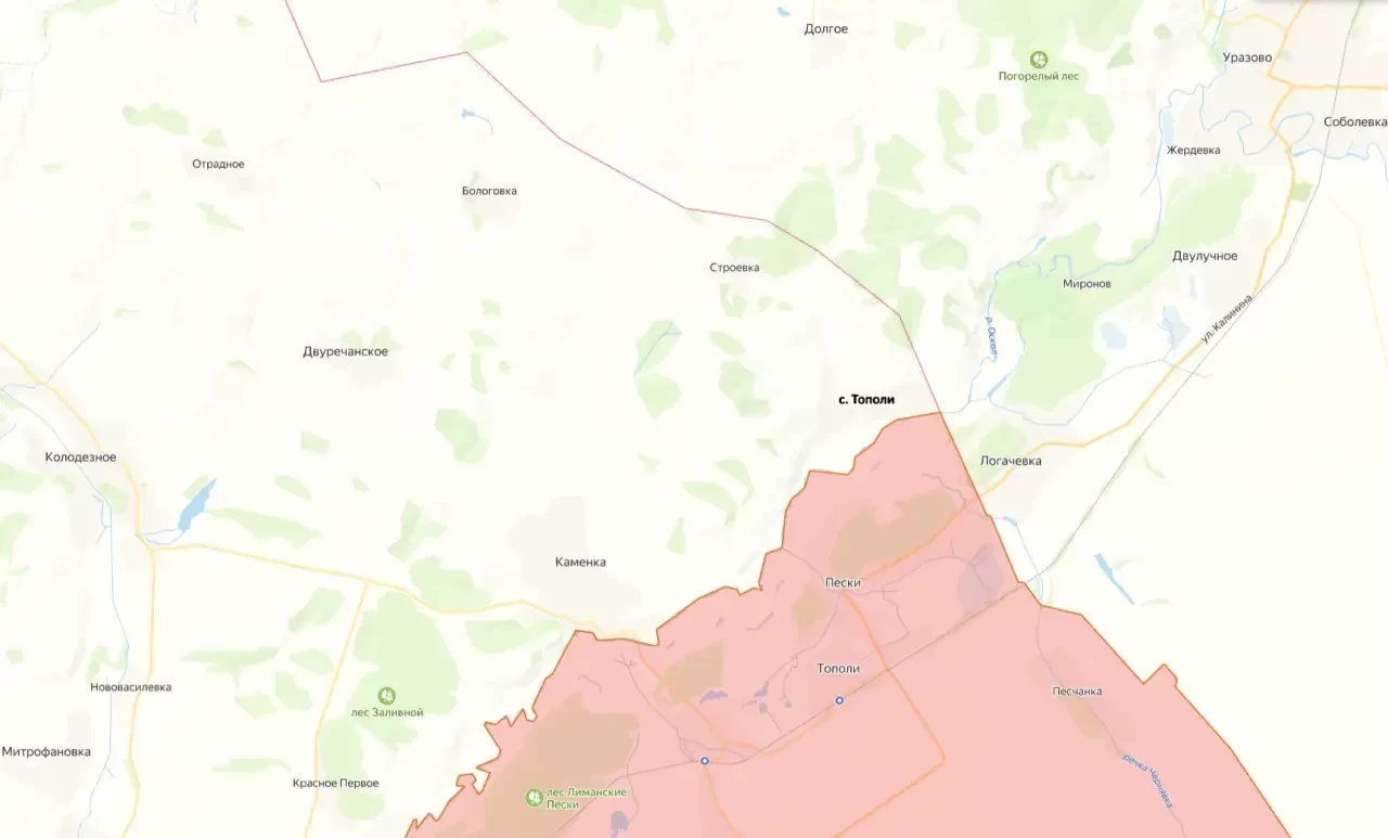 ВС РФ предприняли атаку в районе населенного пункта Тополи, находящегося на украинско-российской границе между Уразово (Валуйский район Белгородской области) и Двуречным (Харьковская область).