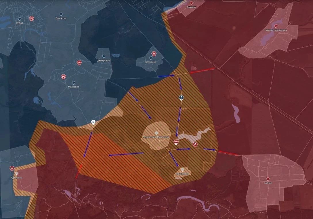 Днем ВСУ фиксировались в Фанасеевке и Черкасской Конопельке, к ночи противник рассредоточился по укрытиям на окраинах и близлежащих лесопосадках. Поступали сообщения о признаках подготовки новых накатов противника. В любом случае ситуация привела к новым боям на подступах в Махновке (пара км до Суджи), в которую ранее ВС России удавалось заходить".