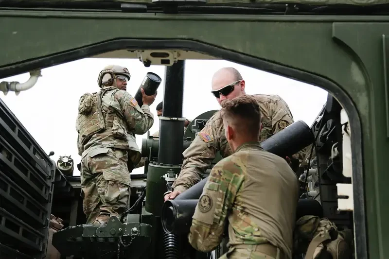Самоходный миномёт M1129 на позиции