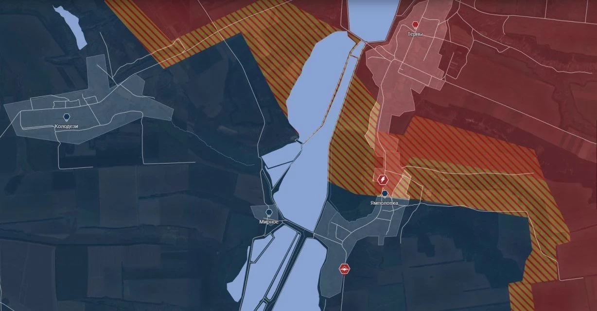 На Краснолиманском участке в районе высот у Тернов-Ямполовки последние дни шли ожесточённые бои - наши военные сохранили позиции, а также контратаковали ВСУ в Ямполовке, зашли с севера и ведут бои в центре села.