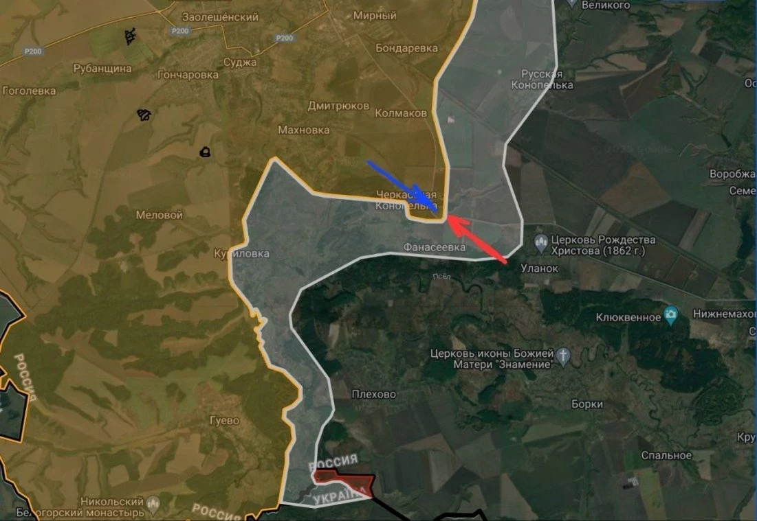 В свою очередь Telegram-канал "Русская Весна" пишет о том, что в течение суток группировка войск "Север" продолжила активные наступательные действия в районе Фанасеевки и Черкасской Конопельки, где с 6-го февраля остаются остатки подразделений ВСУ, пытавшиеся к прорваться к н.п. Уланок.