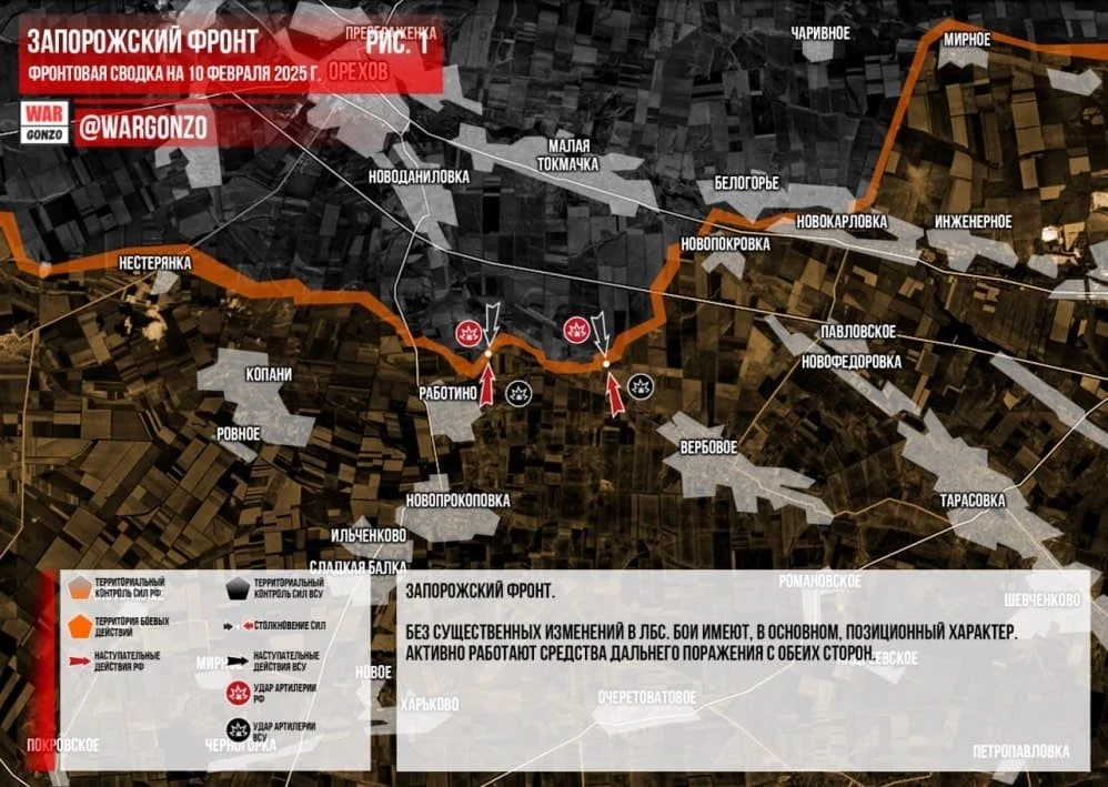 Обновлённая карта боевых действий на Украине в зоне СВО по состоянию на сегодня, 10.02.2025