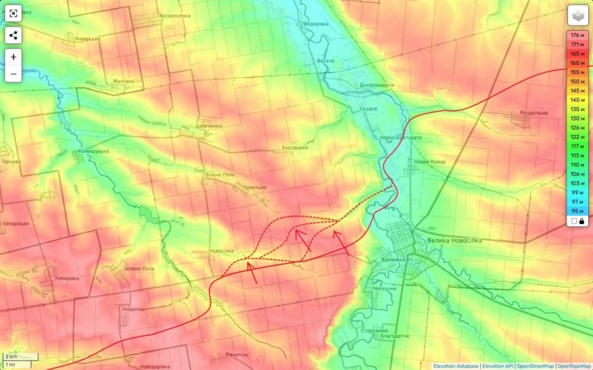 Речь идёт об участке фронта на стыке Запорожья и ДНР, где после освобождения Великой Новосёлки ВС РФ пошли в наступление на север - от Времевки - и улучшили свои позиции.