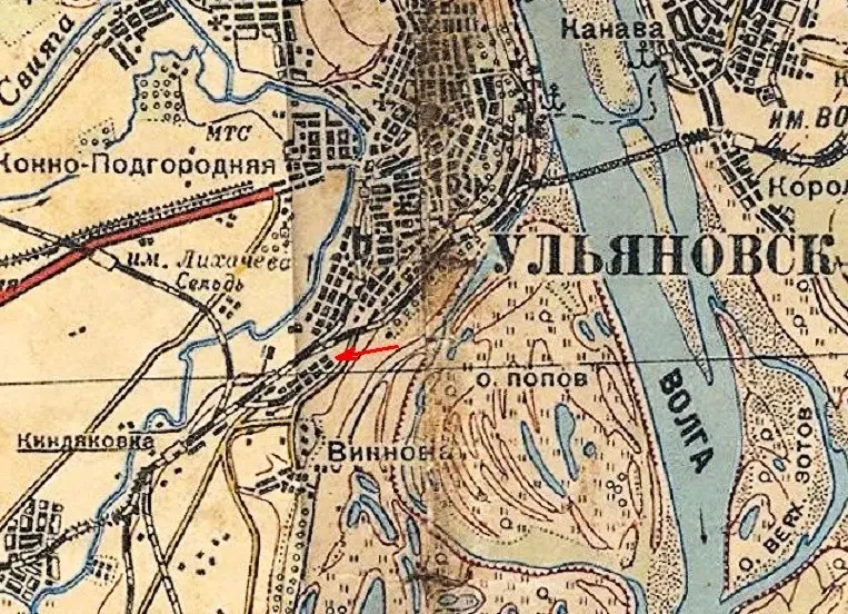 Место расположения первого ульяновского автозавода (показано стрелкой)
