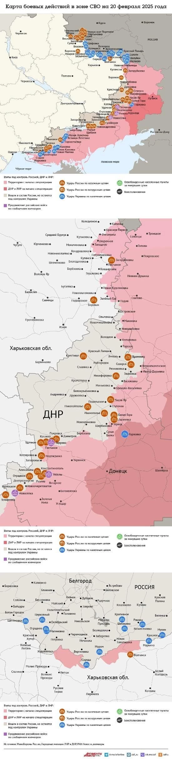 Карта СВО на Украине по данным на сегодняшний день, 20.02.2025