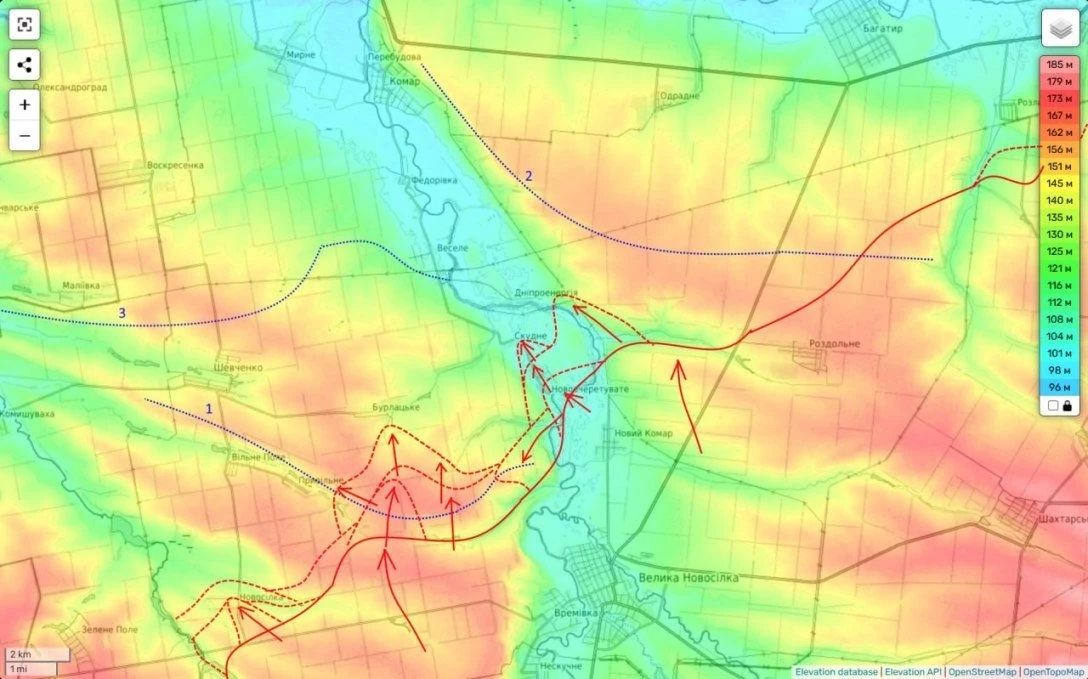 Таким образом наше наступление здесь развивается вполне себе успешно. Постепенно мы должны выйти к линии обороны «3» (главный здесь рубеж обороны, возведенный еще в 2023 году) и используя ее слабые места, попытаемся ее прорвать. И если нам это удастся, то у противника начнутся очень большие проблемы. Так как до самой Днепропетровщины здесь у ВСУ укреплений больше нет.