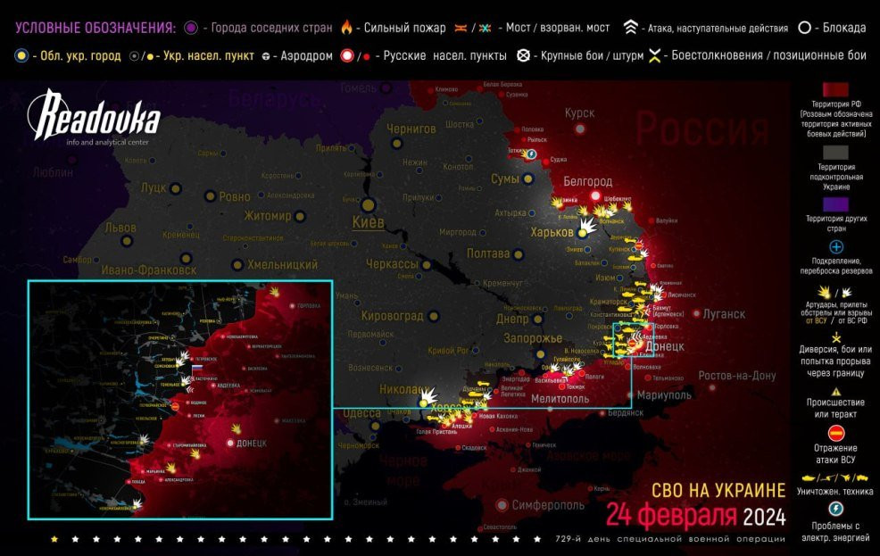 Последние новости СВО от 25 февраля 2024. Карта боевых действий на Украине на сегодня, военная сводка