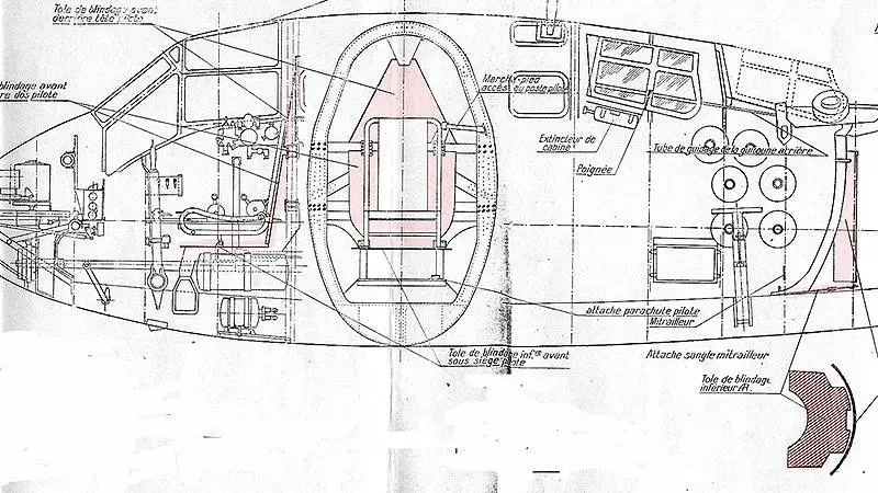 Поэтому было бы желательно уменьшить и массы самолета. Частично я об этом уже написал — уменьшение запасов горючего (думаю, французские летчики и сами догадывались не заливать все баки), лишний пулемет/пулеметы. Еще несколько десятков килограммов — ненужное для штурмовика оборудование вроде посадочной фары, фотокамеры (не фотопулемета, он тоже был) и кислородного оборудования. Кстати, с последним очередная непонятность: ни на каком разрезе или фотографии его не видно, но во всех справочниках указано, что потолок составляет 9,5 км (что абсолютно не нужно штурмовику), но на высоту более 5–5,5 км без кислорода не подняться.