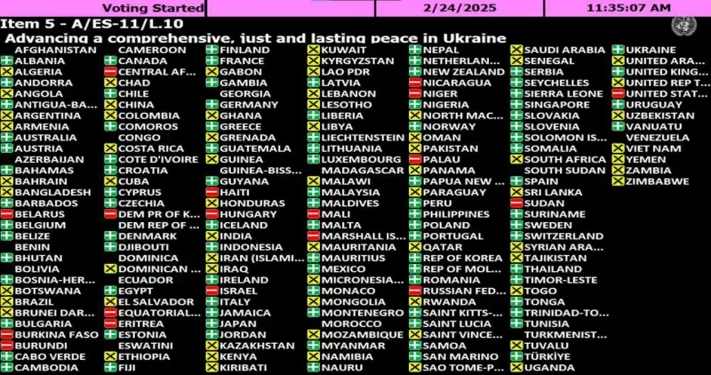 Итоговый результат: 93 страны «за», 18 – «против», 65 воздержались, остальные не голосовали.