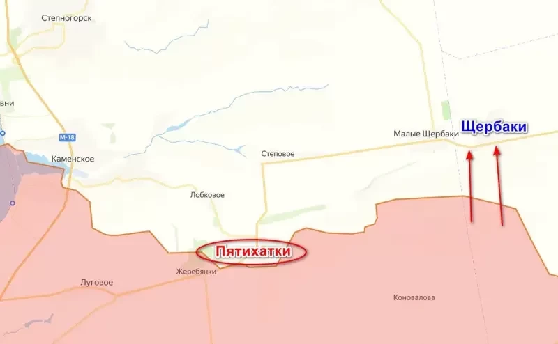 Кстати, бои идут не только в районе Пятихаток, накануне наши атаковали восточнее в районе села Щербаки, причем успешно. Согласно имеющимся данным, штурмовики взяли два мощных опорника ВСУ в районе этого села, но в самый населенный пункт пока не заходили.