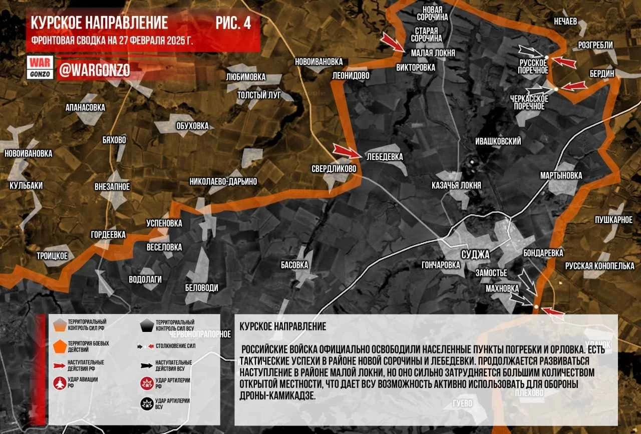 ВС РФ давят в направлении Лебедевки в Курской области: свежая информация о боевых действий на 27 февраля