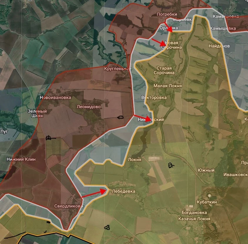 ВС РФ восстановили контроль над Орловкой и Новой Сорочиной, идет зачистка упомянутых населенных пунктов.