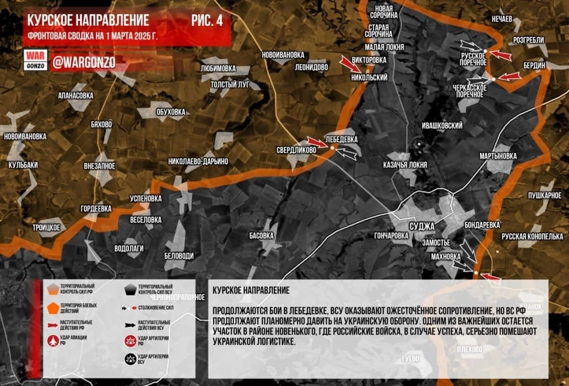 Свежая карта боевых действий в Курской области от 01.03.2025