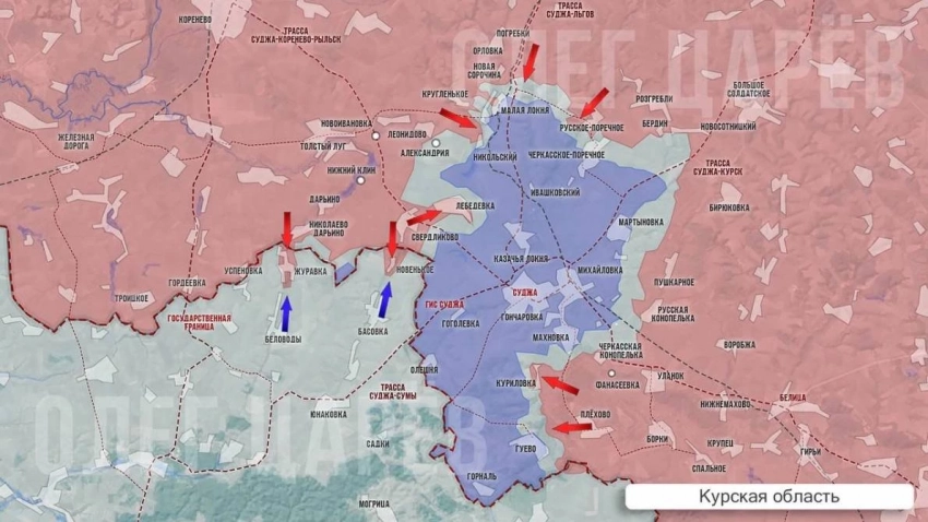После перехода госграницы в районе Николаево-Дарьино ВС РФ прорвались в Новенькое, закрепились там и продолжают наступление на территории Сумской области. Приходят сообщения, что наши заняли Журавку, атакуют по направлению к Беловодам и приближаются к Басовке. Такое развитие наступления угрожает окончательно перерезать основные пути логистики ВСУ из Сумской области в Суджанский район.