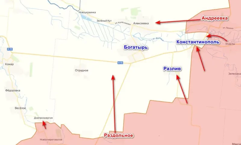 Согласно информации с украинских ресурсов, на вечер четверга, 6 марта, штурмовые подразделения группировки войск «Восток» прорвали оборону ВСУ со стороны села Раздольное и продвинулись в северном направлении до 3 км. Как заявил медийный боевик с позывным «Мучной», находящийся на этом направлении, ВС РФ планируют обойти село Богатырь с запада, тем самым отрезав всю украинскую группировку от снабжения.