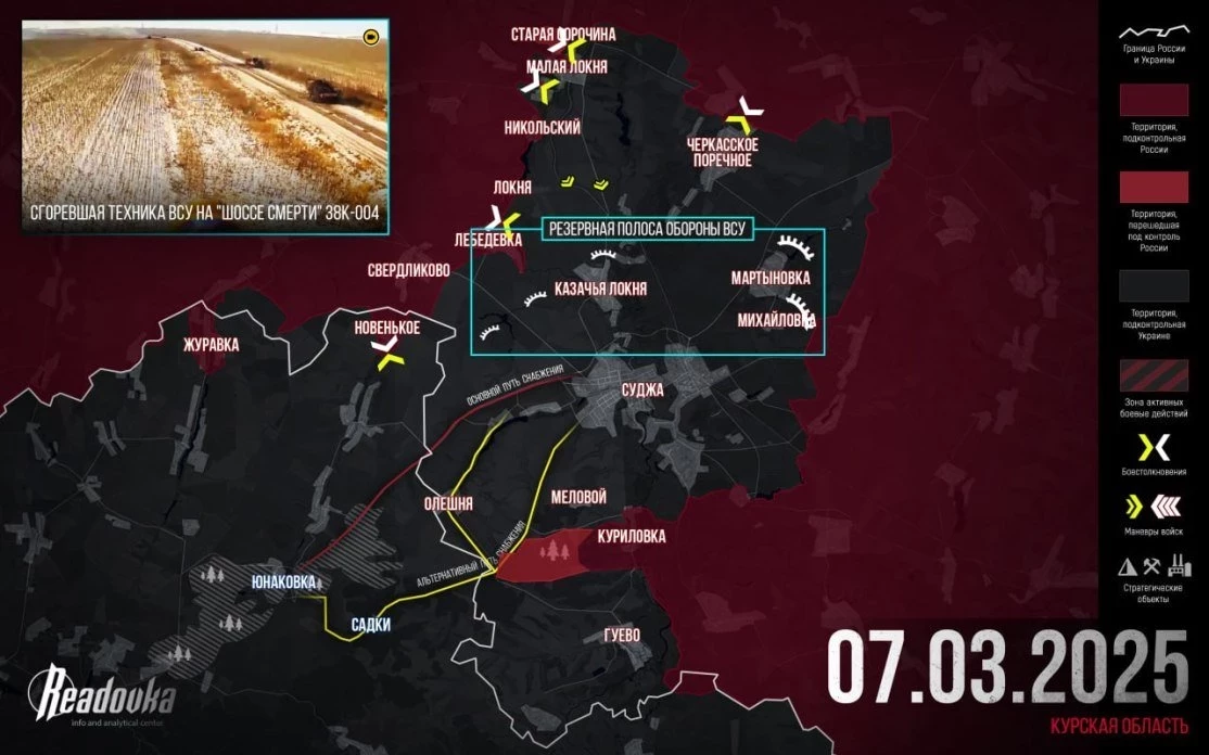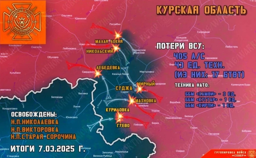 После приостановки передачи Украине разведданных из Соединенных Штатов ВС России добились продвижения в Курской области. Кроме того, увеличилась интенсивность атак позиций ВСУ. Отмечается, что вылазка украинских войск в Курскую область находится «на грани срыва».