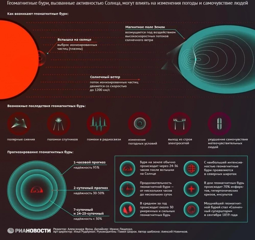 Возникновение и последствия геомагнитных бурь (инфографика)