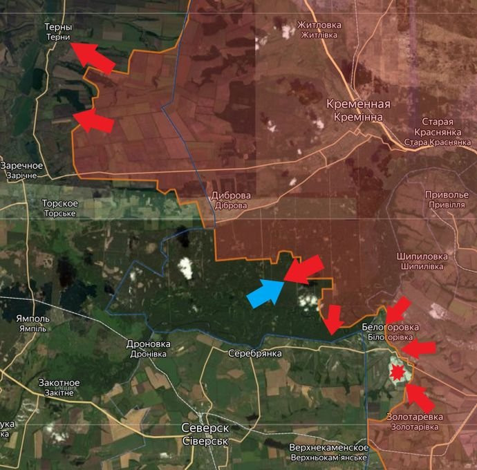 На Луганском направлении российские войска при поддержке средств дальнего поражения атаковали у Тернов, информирует Telegram-канал Wargonzo. Также российские военные пытались продвинуться в Табаевке и Синьковке. Под ударами ВСУ в Белогоровке, Серебрянке и Торском.