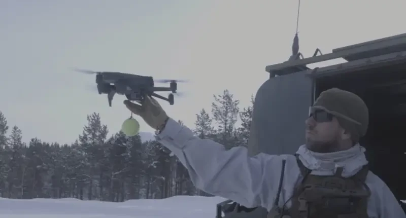 В ходе этих испытаний норвежцы сбрасывали с квадрокоптеров теннисные мячики на бронетехнику условного противника, показав соответствующие кадры на сайте военного ведомства.
