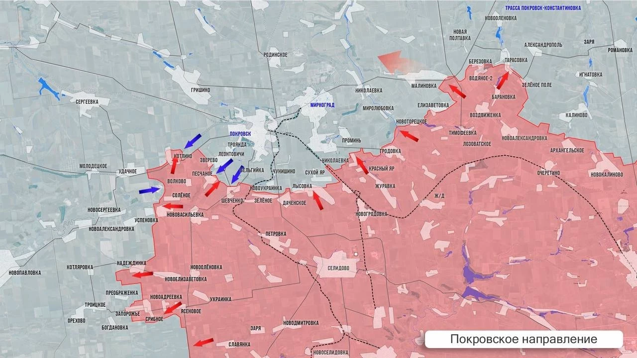 На левом фланге Покровского фронта сохраняется относительный статус-кво при изматывающих боях высокой плотности. В Удачном бои идут в центре села, в Котлино ВС РФ стараются удержать границы. Упорнейшие сражения в Песчаном и Зверево. Часть Шевченко в серой зоне - ВСУ практически непрерывно пытаются прорваться к южной окраине села и высадить там десант. Наши дроноводы в круглосуточном режиме бьют по скоплениям сил и логистическим маршрутам. Тяжелые бои в районе Лысовки, враг контролирует до половины села. На правом фланге позиционные бои в Елизаветовке и Тарасовке.
