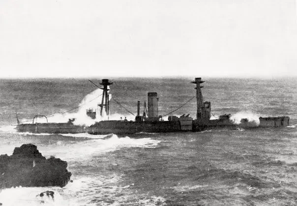 Села весьма качественно: в районе машинного отделения открылась течь, линкор получил сильный крен на левый борт. Попытки снять корабль с камней оказались безуспешны, несмотря на то, что испанцы не прекращали их несколько месяцев! К осени появилась надежда на успех спасательной операции: с линкора плавкраном сняли всё, что можно, включая артиллерию главного калибра, чем сильно облегчили его. Но 20 ноября во время шторма корпус разломился напополам и перевернулся. Артиллерия корабля пошла на усиление береговой обороны испанского Марокко.
