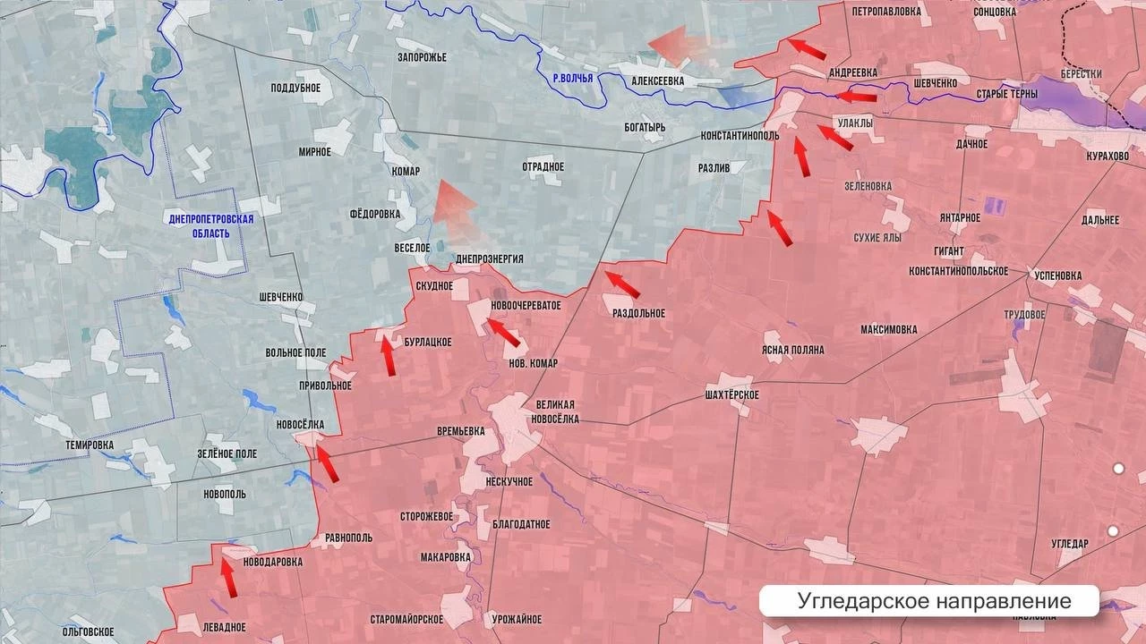 На Покровском направлении южнее Срибного российские подразделения продвинулись на 2 км. Севернее по фронту наши удерживают Запорожье, атакуют западнее и в районе Преображенки, откуда ВСУ, закидывая на бронеавтомобилях резервы, контратакует. ВСУ в очередной раз предприняли попытку срезать российский выступ на западном охвате Покровска: на двух бронированных машинах ВСУ заскочили на наши позиции в районе Солёного. По вражеской технике отработала артиллерия, наши отбились. Из Успенковки приходят позитивные новости о полной зачистке села. На восточном фланге ожесточенные бои без изменений.