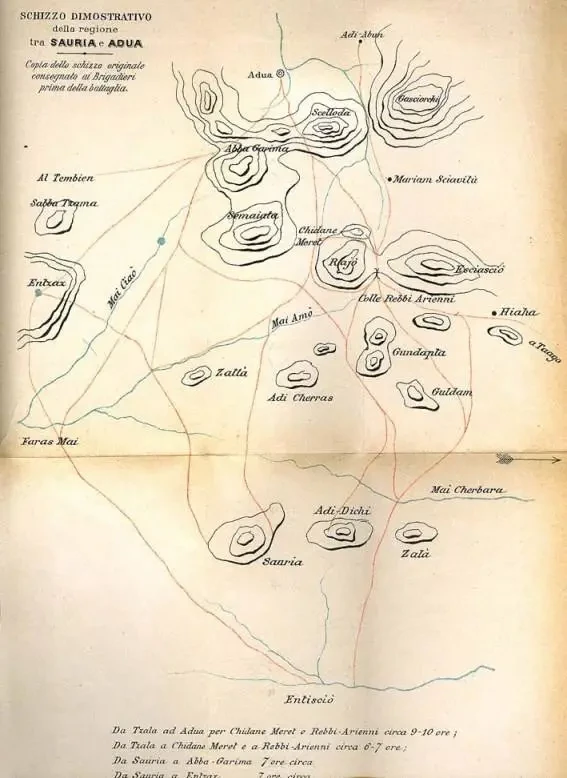 Баратиери разделил свою 17-тысячную армию (сколько точно любителей спагетти было при Адуа, сказать сложно: всего у Баратиери было 29700 итальянцев и 14000 аскари, но большая часть армии оказалась разбросана по гарнизонам) на четыре колонны, которые вели бригадные генералы Маттео Альбертоне, Джузеппе Аримонди, Витторио Дабормида и Джузеппе Элена.