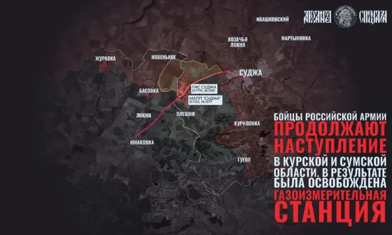 На этот раз российские источники сообщают об еще одном успехе «Северян». В результате атаки с севера бойцы ВС РФ продвинулись вплоть до газоизмерительной станции «Суджа». Это та самая ГИС, которую противник (видимо, опасаются операции «Поток 2.0») ранее подорвал.