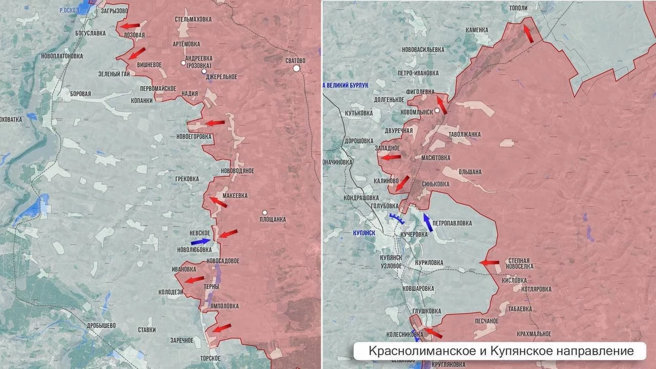 На Краснолиманском участке ВС РФ развивают наступление в районе Катериновки - наши штурмовики закрепились на окраинах села. Несколько опорников в сторону Нового перешли под контроль ВС РФ. Есть продвижение и южнее Колодезей, где формируется еще один клин в обороне ВСУ.