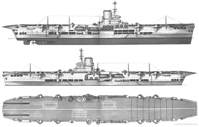 Авианосец «Арк Ройял» действительно был кораблем, который на ближайшие лет пятьдесят определил облик ударного авианосца, а вообще его схема с 9 палубами, 3-мя подъемниками и двойным ангаром стала классической.