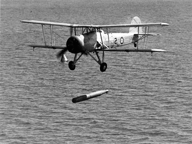 Главным ударным самолётом являлся универсальный биплан Fairey «Swordfish», который получил прозвище «авоська» и являл собой техническую мысль тридцатых годов. То есть был совершенно устаревшим. Правда, все свои победы на первых этапах Второй мировой войны британцы одержали именно с помощью этой летающей архаики.