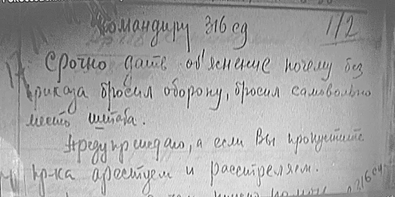 «Ободряющая» шифровка Жукова, направленная командиру 316 сд И.В. Панфилову, 17.11.41 г. 8.30.